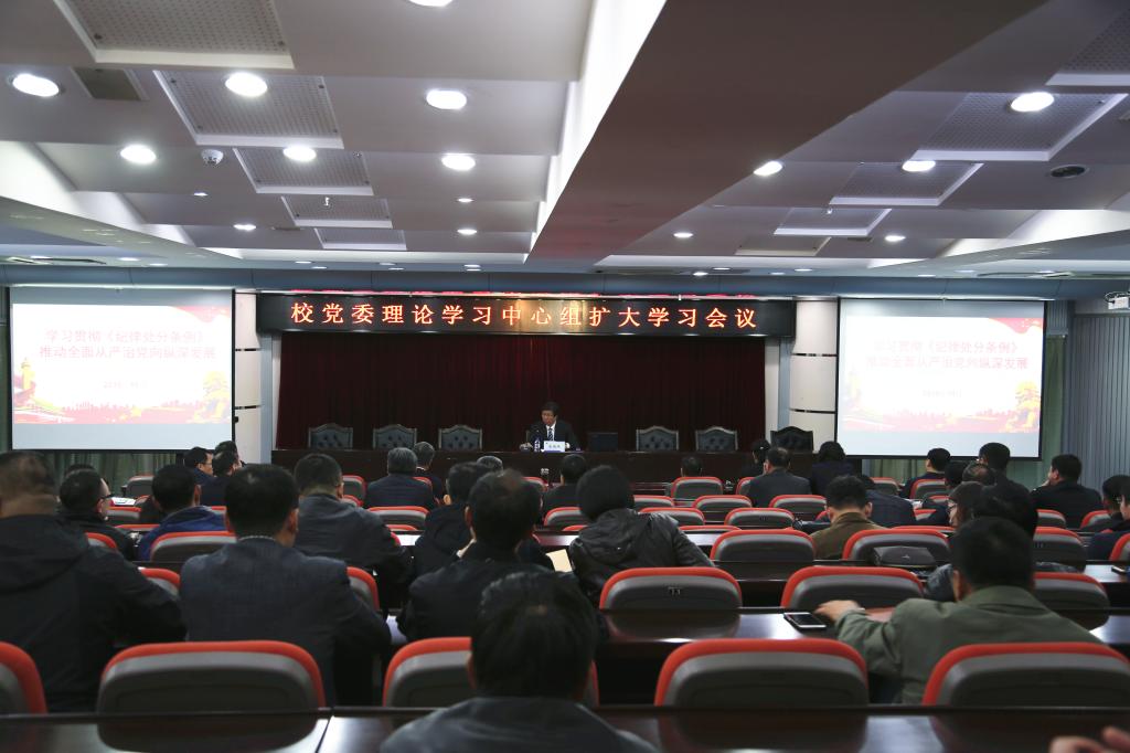 10月17日下午,星空官方网站_星空xingkong(中国)在第一报告厅召开校党委理论学习中心组扩大学习会议,专题学习中央新修订颁布的《中国共产党纪律处分条例》。党委书记潘福林主持会议并讲话。