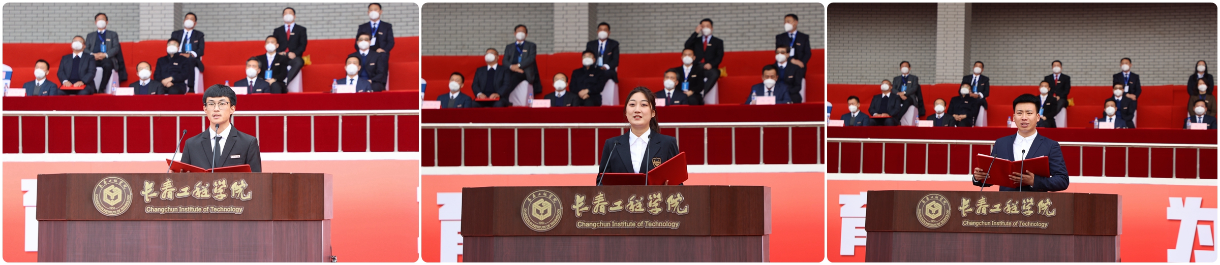 土木工程学院土木2241班学生韩金烨、机电工程学院材料2241班学生张丁元、研究生学院2022级学生董柯言代表全体新生依次发言。