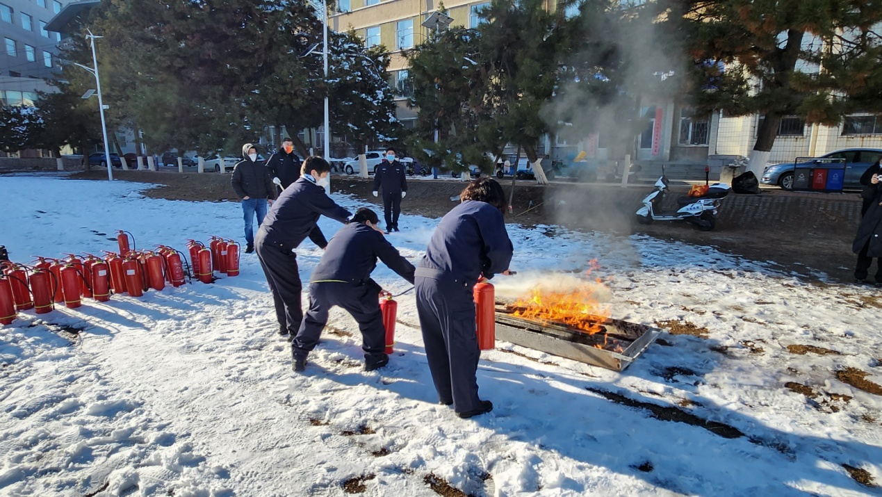 演练现场模拟了灭火操作,讲解了灭火器材的使用、维护及注意事项,工作人员轮流进行灭火实训,通过演练切实增强工作人员自身紧急应变能力和自我防护能力。