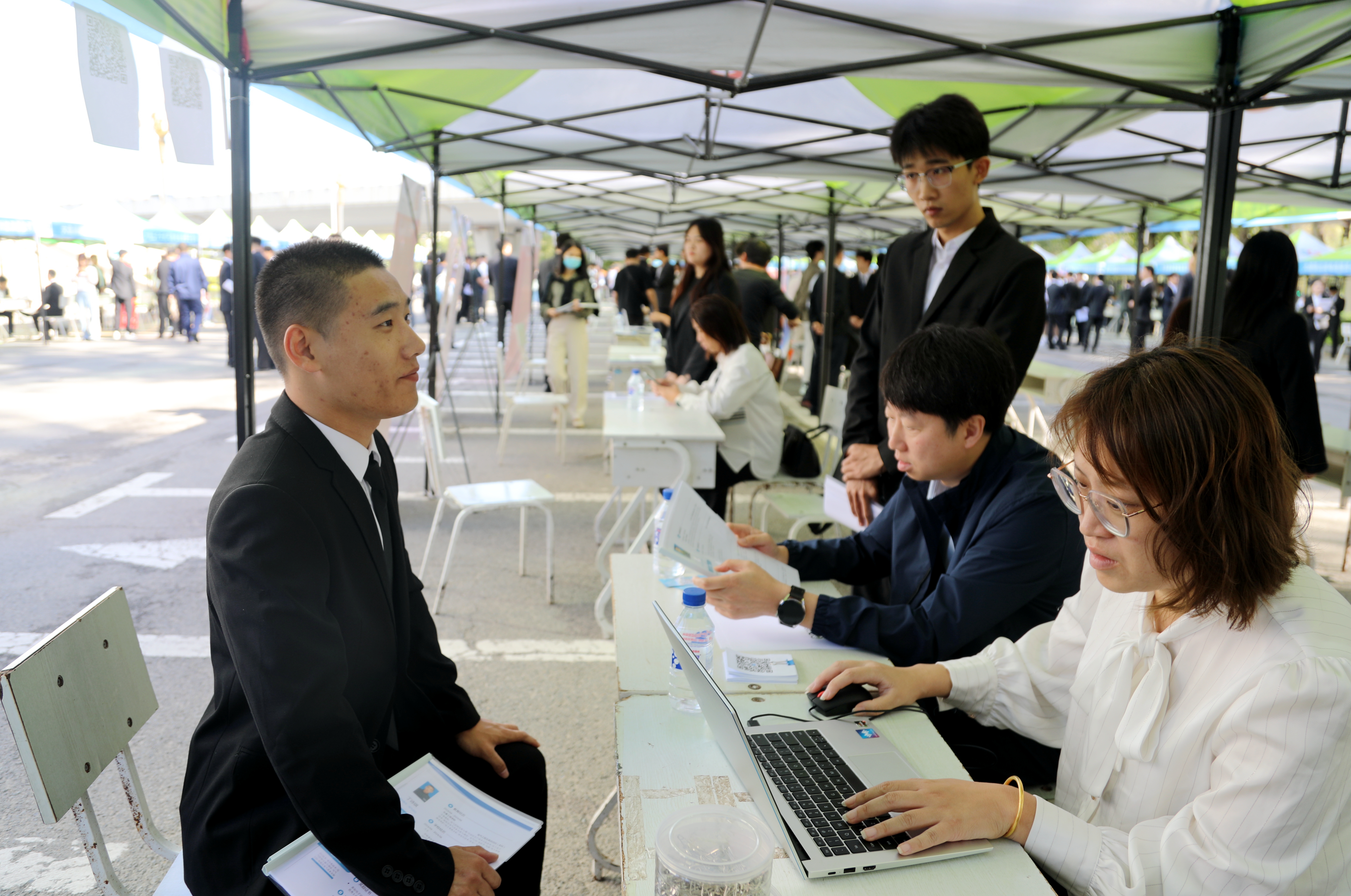 各学院负责人及就业工作辅导员到招聘现场与用人单位深入交流,组织、指导学生应聘;毕业生主动与用人单位代表互动,了解企业情况,充分把握机会。