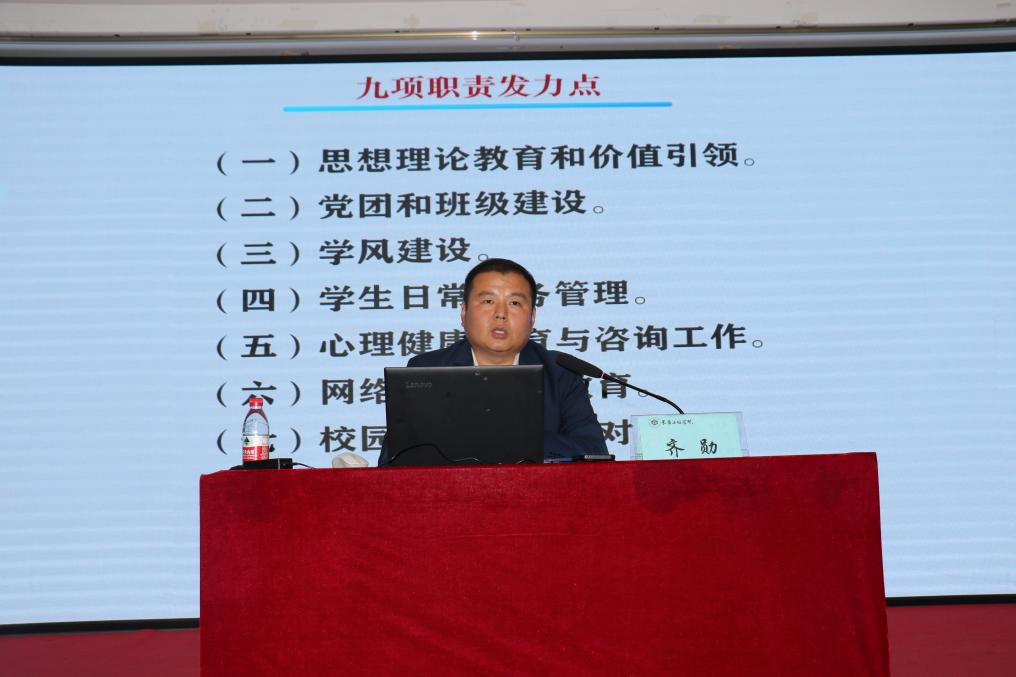 齐勋老师结合自身的实际工作理念、思路、经验、方法和感悟,以“提质增效,打造辅导员品牌IP实践探索”为主题,剖析了辅导员职业内涵、阐明了辅导员能力要求、提出了辅导员工作方法,以生动的案例向我们介绍了自己多年来从事学生工作的探索与实践。
