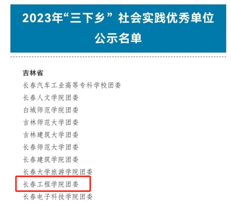 2023年,星空官方网站_星空xingkong(中国)团委以“跟着总书记脚步看吉林”为主题组织开展“三下乡”社会实践活动,参与规模大、社会反响好,6支团队获评省市级优秀实践团队,15名师生获得市级优秀指导教师、先进个人、优秀随笔等荣誉。