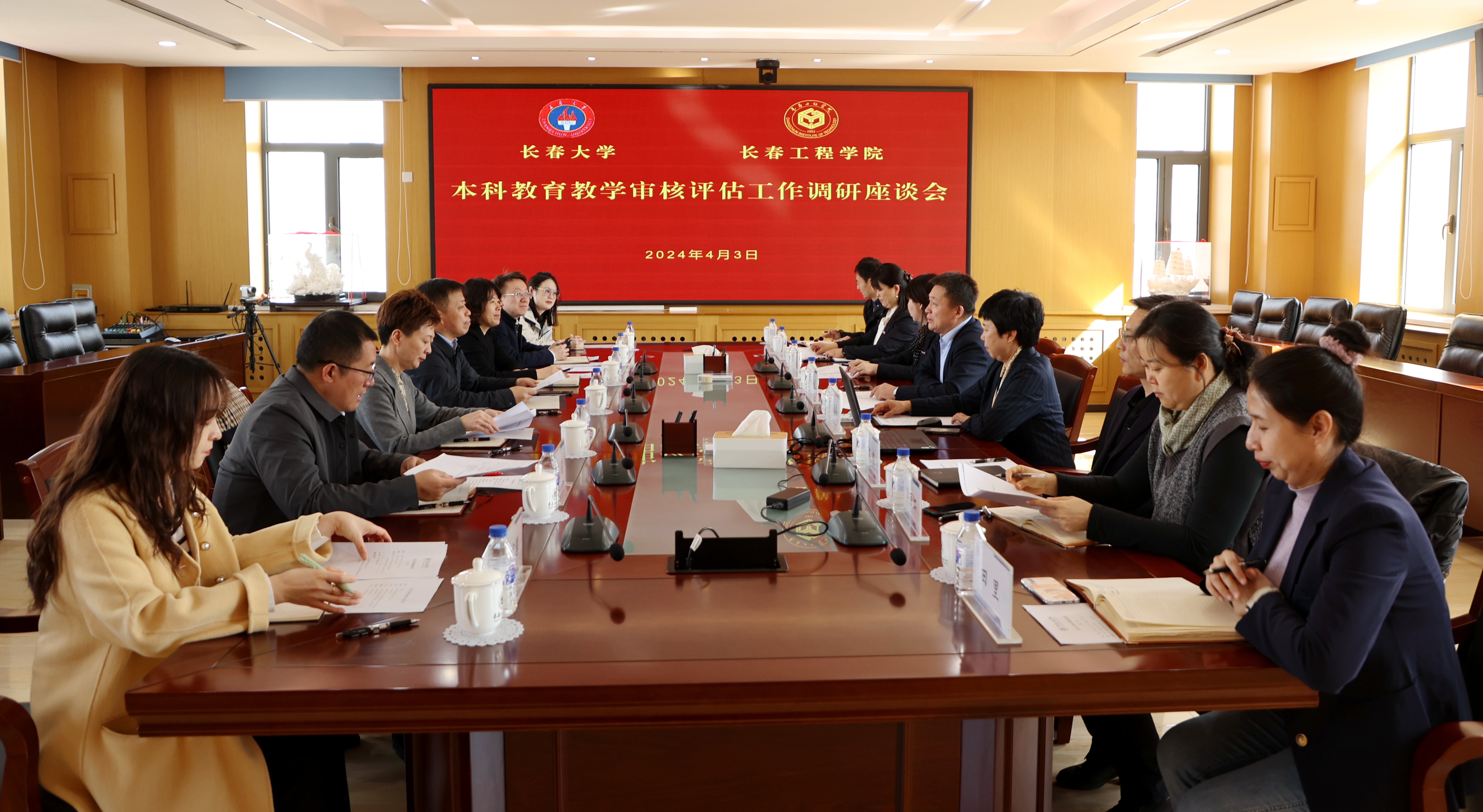 4月3日上午,长春大学张洪杰副校长一行7人来我校就本科教育教学审核评估工作进行调研交流。我校副校长张邦成主持会议。