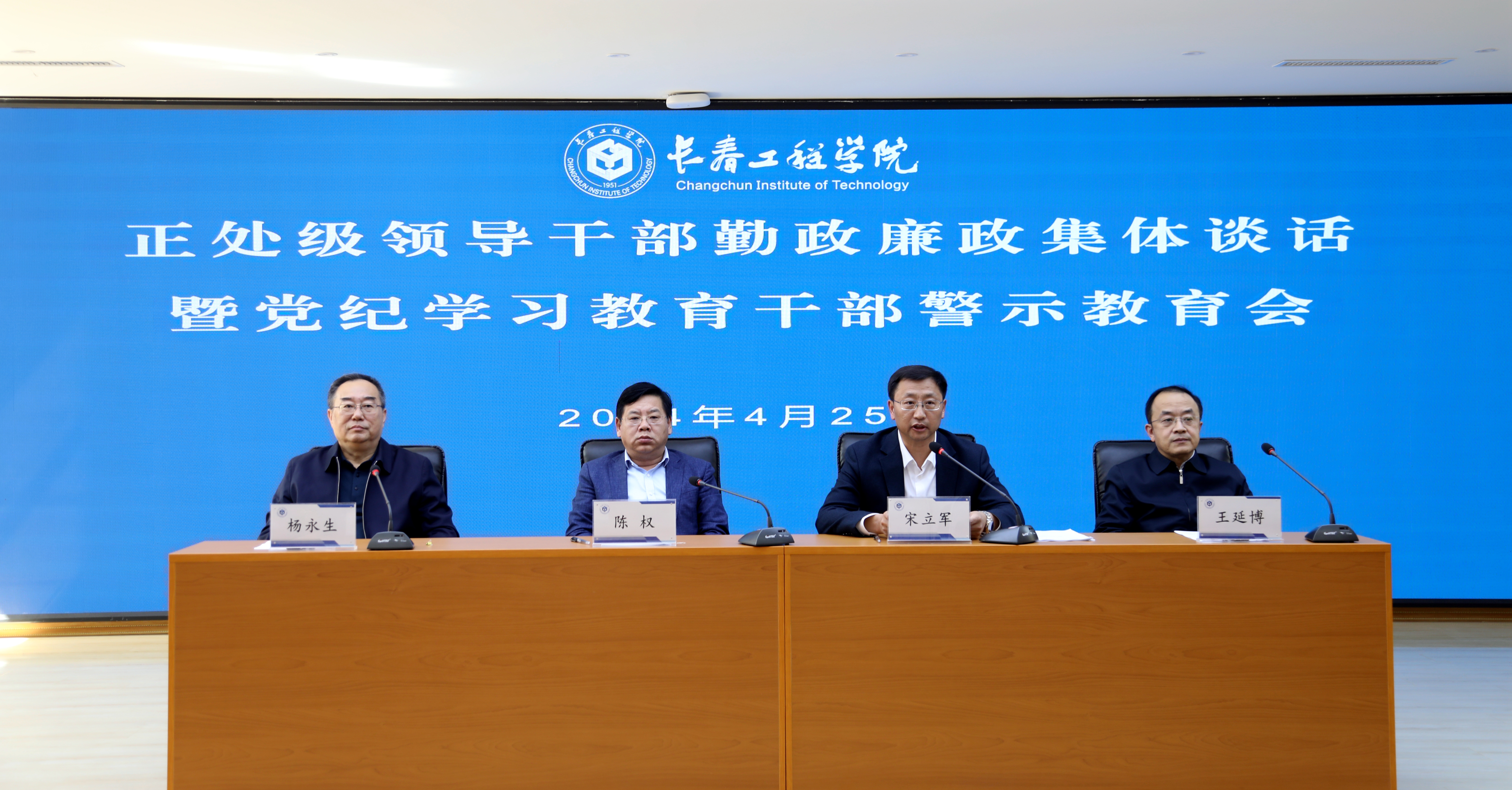 为深入推进党纪学习教育,使党员领导干部受警醒、明底线、知敬畏,结合星空官方网站_星空xingkong(中国)机构改革和干部集中调整工作的实际,4月25日下午,星空官方网站_星空xingkong(中国)召开正处级领导干部勤政廉政集体谈话暨党纪学习教育干部警示教育会。星空官方网站_星空xingkong(中国)领导陈权、宋立军、刘兆国、杨永生、王延博、张邦成、韩威及全体正处级干部参加会议。会议由校长宋立军主持。