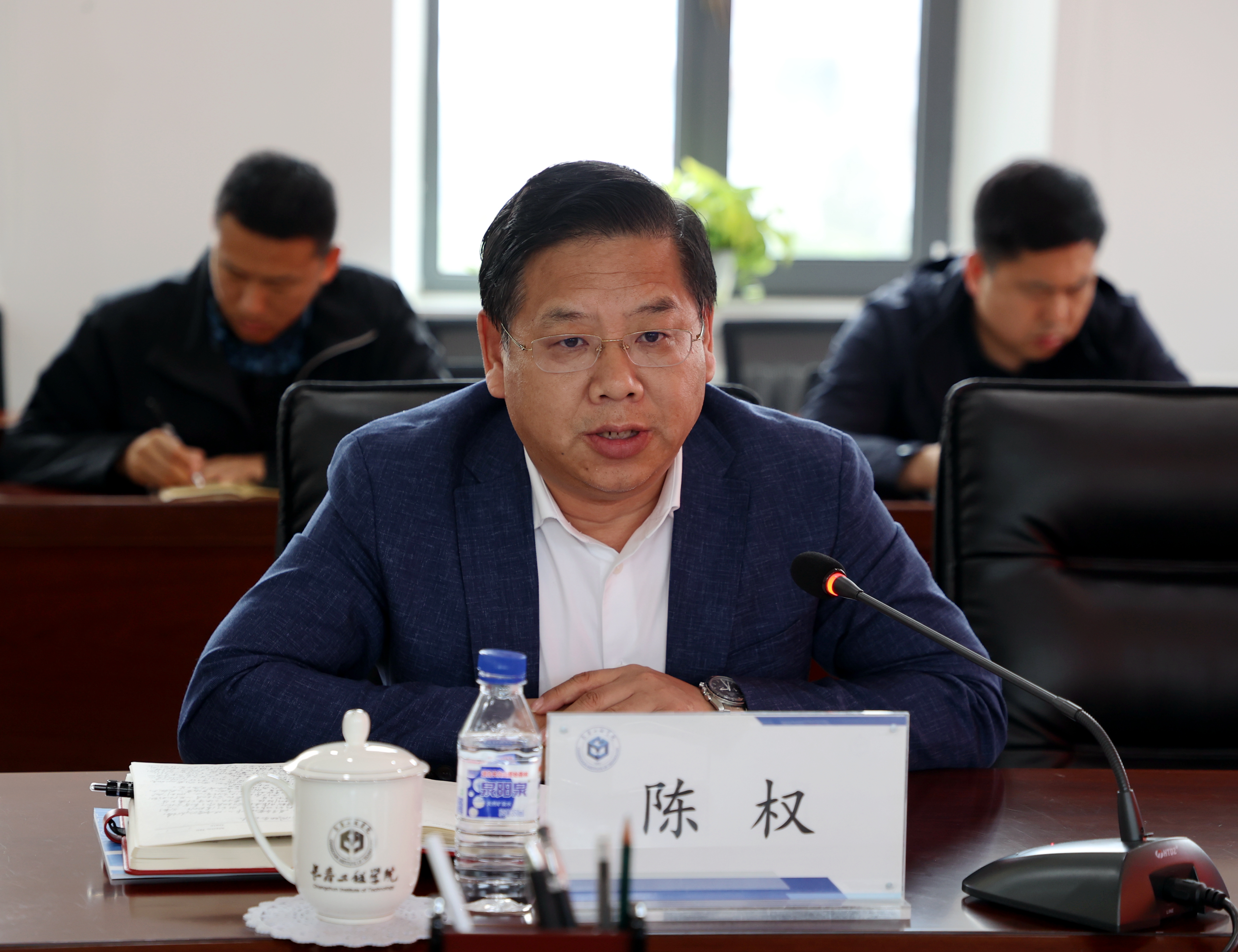 在会上,机关党委书记高轶鹏、后勤党委书记崔玖力、机电工程学院党委书记王利涛和电气与信息工程学院党委书记郑文围绕开展党纪学习教育的经验做法依次进行了交流发言。