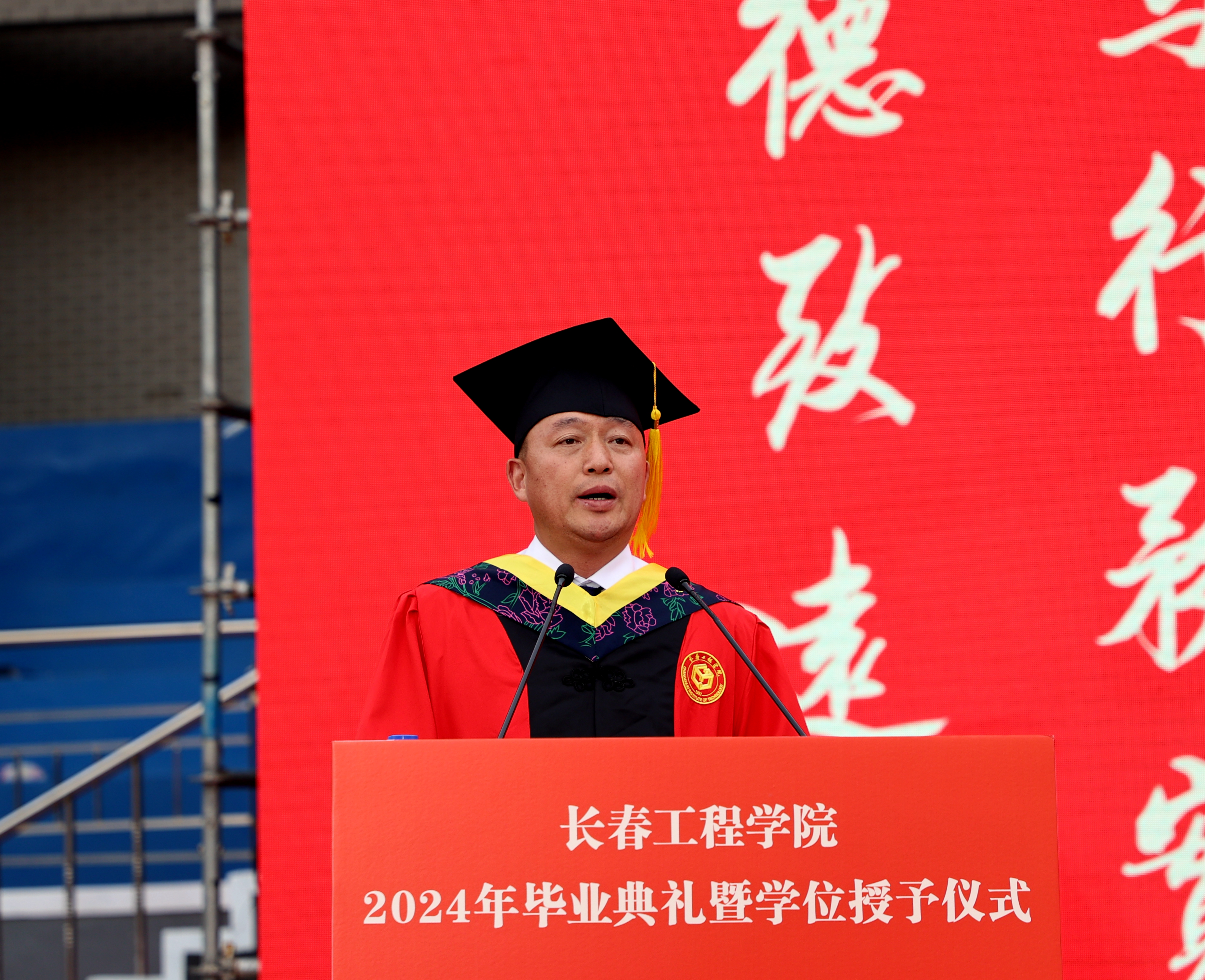 宋立军校长在典礼上讲话,他代表星空官方网站_星空xingkong(中国)向圆满完成学业并顺利毕业的同学们致以热烈的祝贺。他殷殷叮嘱毕业生同学们,“一定要心怀感恩之情,感恩养育你们的父母,为了你们能够健康成长,学有所成,他们不辞辛劳,倾尽所有;感恩培育你们的恩师,为了你们练就过硬本领、筑牢专业之基,他们始终辛勤耕耘、无悔付出;感恩我们伟大的祖国,是祖国的繁荣昌盛,给予你们追逐梦想的强大动力和未来广阔的人生发展空间。”