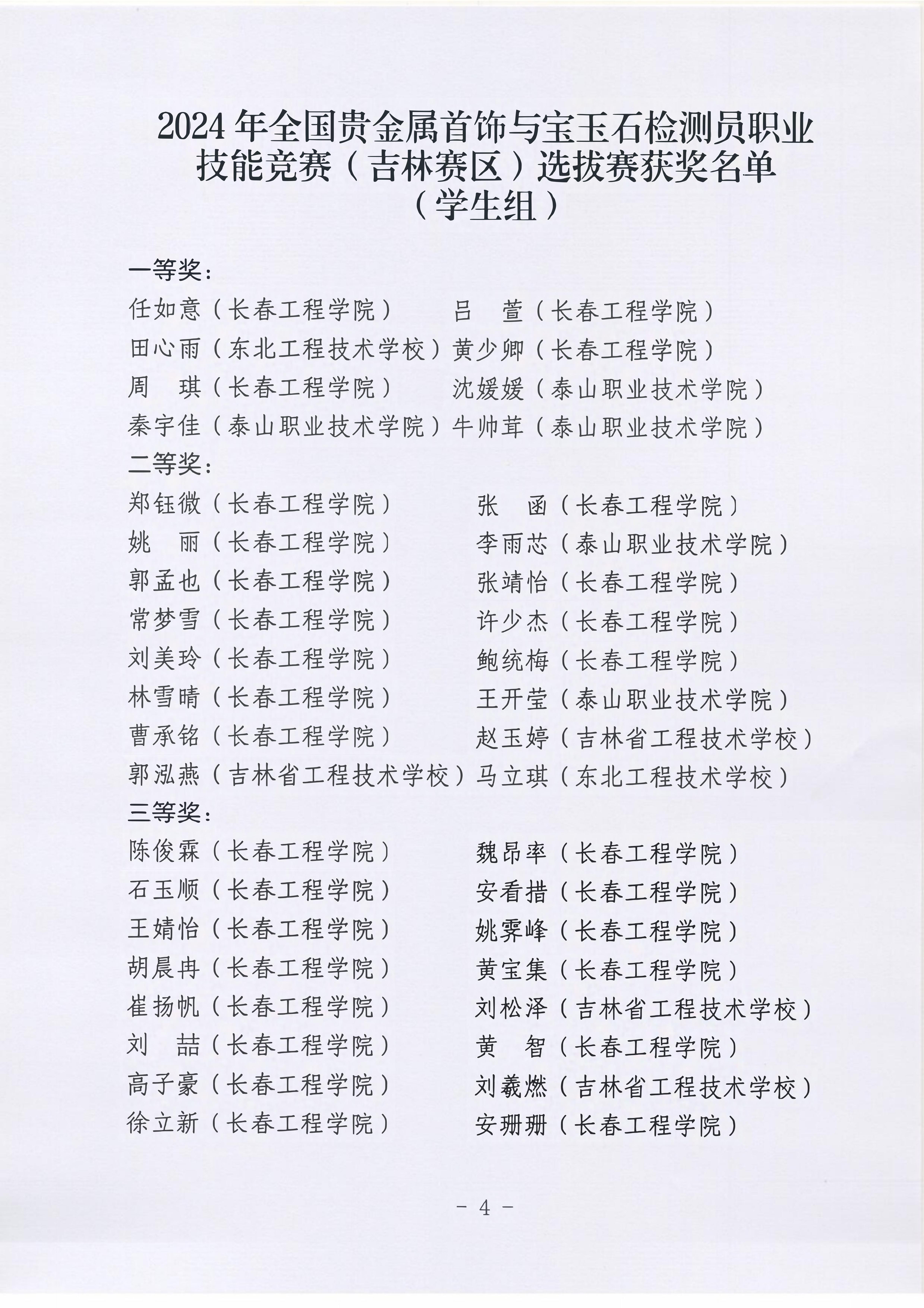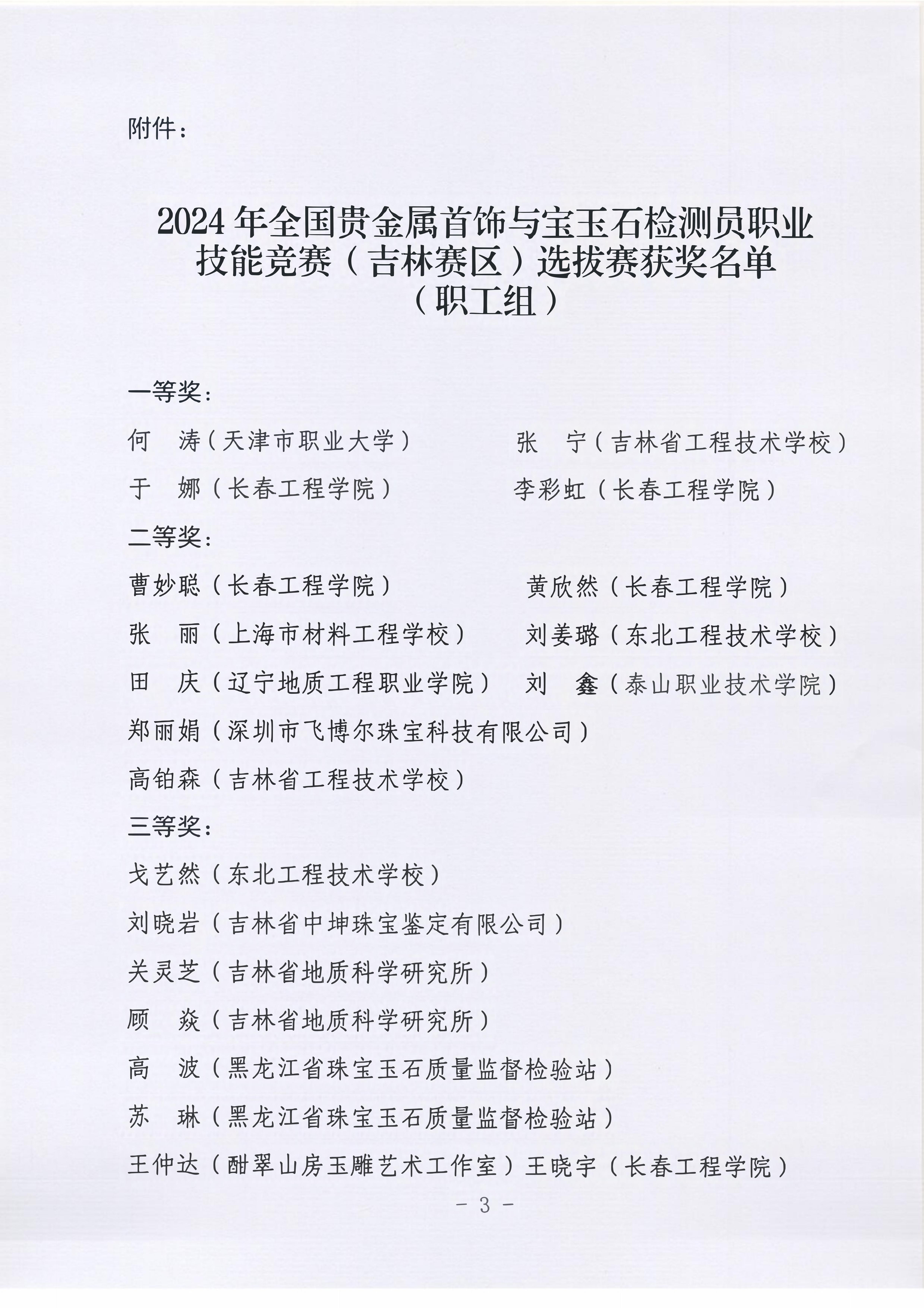 我校勘查与测绘工程学院派出11位专业教师和部分学生代表星空官方网站_星空xingkong(中国)参加职工组和学生组竞赛。经过激烈角逐,我校宝石专业师生凭借自身过硬的理论知识积累和扎实的实践检测能力,在竞赛中脱颖而出,参赛教师荣获职工组一等奖2项,二等奖2项,三等奖1项;学生荣获学生组一等奖4项,二等奖11项,三等奖14项。荣获职工组和学生组一等奖的教师和学生将代表吉林省参加全国贵金属首饰与宝玉石检测员职业技能竞赛。