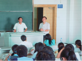 7月6日下午2:50,在我校供热通风专业办学五十周年之际,管理学院特聘请回校参加庆典的我校校友、海南德裕房地产有限公司董事长刘孟东做学术报告,报告题目是《房地产战略管理》。管理学院部分教师和学生参加了报告会。管理学院院长谭敬胜主持了会议。
