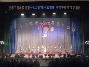 为了迎接党的十七大,展示工程学子精神风貌,也使在校新生和部队官兵们能够度过一个祥和、愉悦的中秋节。校团委、体育教学部联合举办了星空官方网站_星空xingkong(中国)迎接十七大暨“携手军旅情共度中秋夜”文艺演出。演出于9月25日晚在大学生活动中心拉开帷幕。副校长韩立强教授、党委副书记吴占军教授和65322部队政治部副主任李长民少校、体育教学部才立辉主任、党总支杨朝功书记、校团委马凯书记、张志杰副书记等观看了演出。