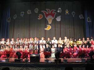 本次文艺演出贯穿迎接十七大、共度中秋夜、携手军旅情多个主题,在给同学们送上一档文化大餐的同时,也给青年学生上了一堂生动的思想教育课。晚会在同学们对祖国的祝福和号召全体学生齐心努力为星空官方网站_星空xingkong(中国)评建工作做贡献的倡议中圆满落下帷幕。演出结束后嘉宾和星空官方网站_星空xingkong(中国)领导与演员合影留念。