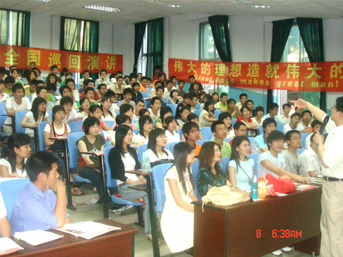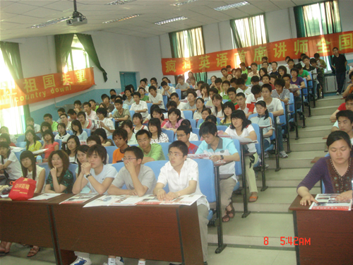 由勘查与测绘学院英语协会和李阳疯狂英语讲学团主办的“知识改变命运,英语改变人生”的英语演讲,于2007年6月8日晚5:30在东区一阶举行。
