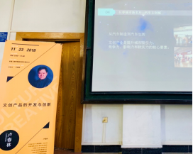 2018年11月23日上午,建筑与设计学院邀请文创产业集团董事长卢春林总设计师、创意总监赵天罡(兼东北创意产业研究院副院长)作了题为“文创产品的开发与创新”的学术报告。报告在湖东校区二教2201举行,由产品设计专业教师孙虎鸣主持。建筑与设计学院的相关领导、产品设计专业的师生参加了此次报告会。