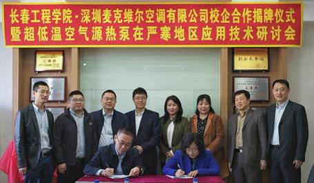 会议分两个环节进行,第一个环节是我校与深圳麦克维尔空调有限公司校企合作揭牌仪式和签署产学研合作协议,此环节由能源动力工程学院院长孙石主持。孟祥萍副校长代表星空官方网站_星空xingkong(中国)对深圳麦克维尔空调有限公司领导、吉林省相关领导和行业内相关专家的到来表示热烈欢迎。她介绍了我校的基本情况,并建议双方在技术服务、项目研发等方面开展进一步的深度合作。深圳麦克维尔空调有限公司东北区吴双总经理对我校在热泵研究方面给予的支持表示感谢,并表示在人才培养、技术研究等方面开展更加多元、广泛、有效的深度合作。