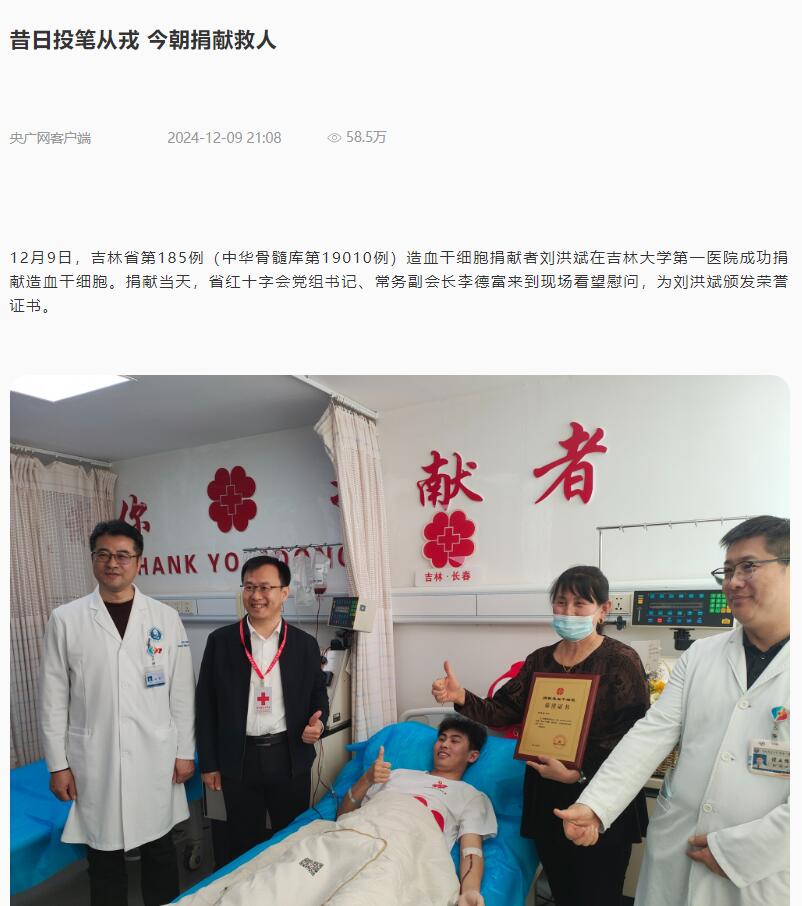 【央广网】昔日投笔从戎 今朝捐献救人
